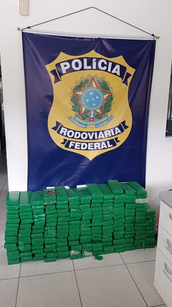 Ao revistar o veículo foi encontrado no porta malas 191 tabletes grandes , um médio e um pequeno, de maconha, somando 131,890kg ( cento e trinta e um quilos e oitocentos e noventa grama).