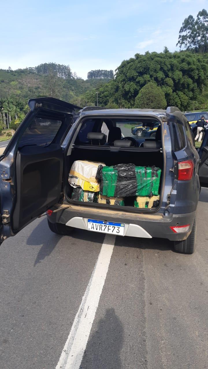 Por volta das 10h15 no KM 116 da BR 470 em Ibirama , foi abordado o veículo Ford Eco Sport portando placa de Cruz Machado - PR.
