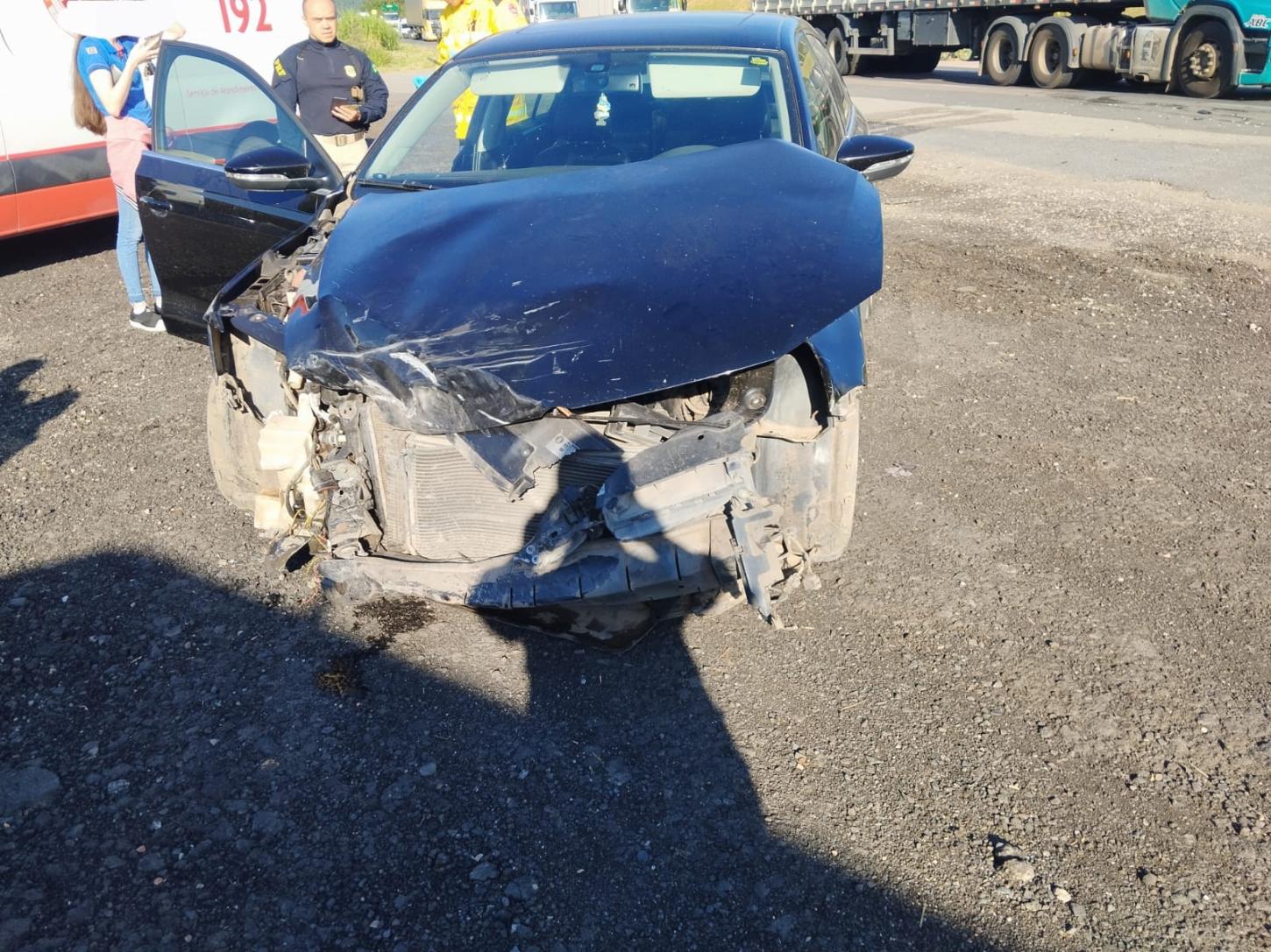 De acordo com os bombeiros, a colisão envolveu uma carreta rodotrem e um automóvel Jetta. O motorista da carreta, um homem de 48 anos, estava sozinho no veículo e não sofreu ferimentos.